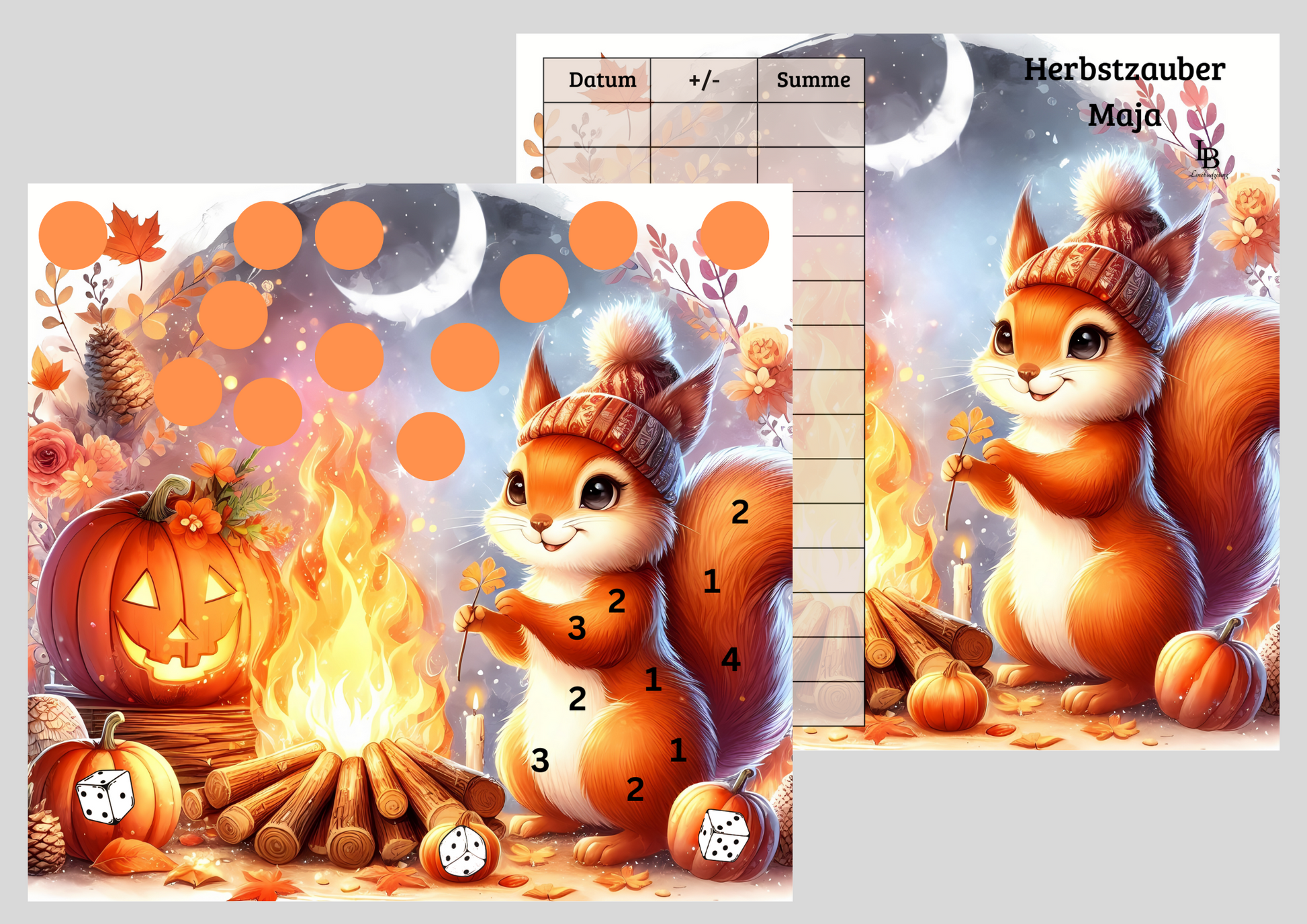 2er Klappkarte ,, Herbstzauber Maja,, zum Rubbeln, Würfeln und Abstreichen