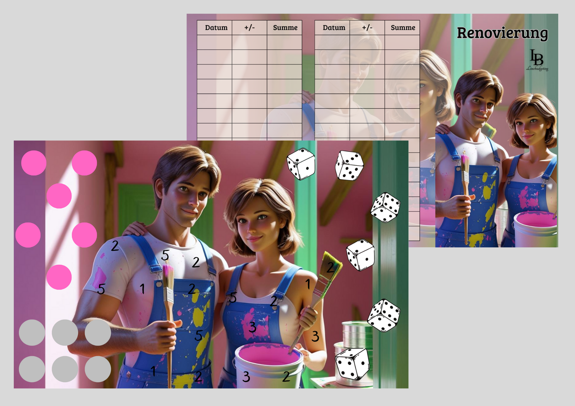 3er Klappkarte ,,Renovierung,, zum rubbeln,würfeln,abstreichen und Tombola