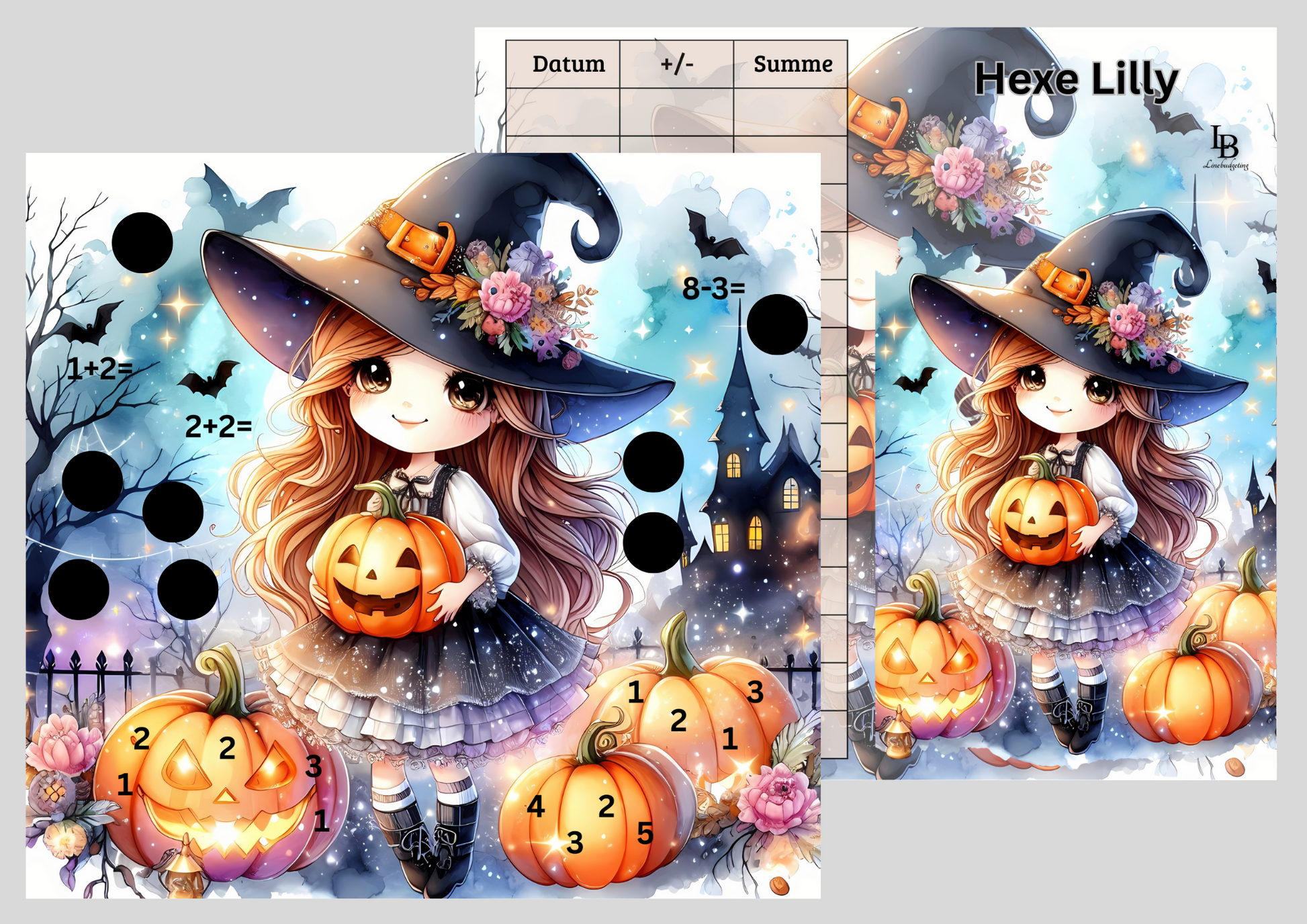 B-Ware 2er Klappkarte ,,Hexe Lilly,, zum Rubbeln, Abstreichen und Rechnen.