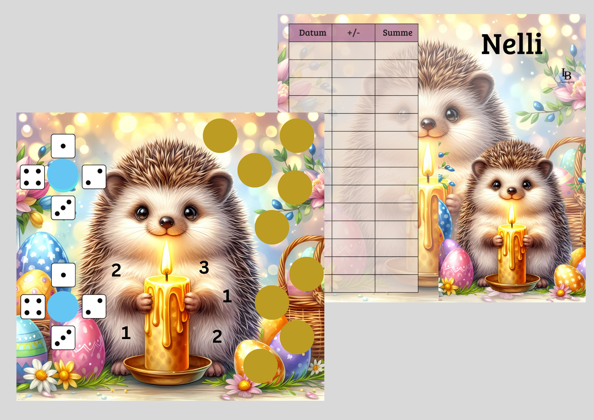 B-Ware 2er Klappkarte ,,Nelli,, zum Rubbeln, Abstreichen, Würfeln.