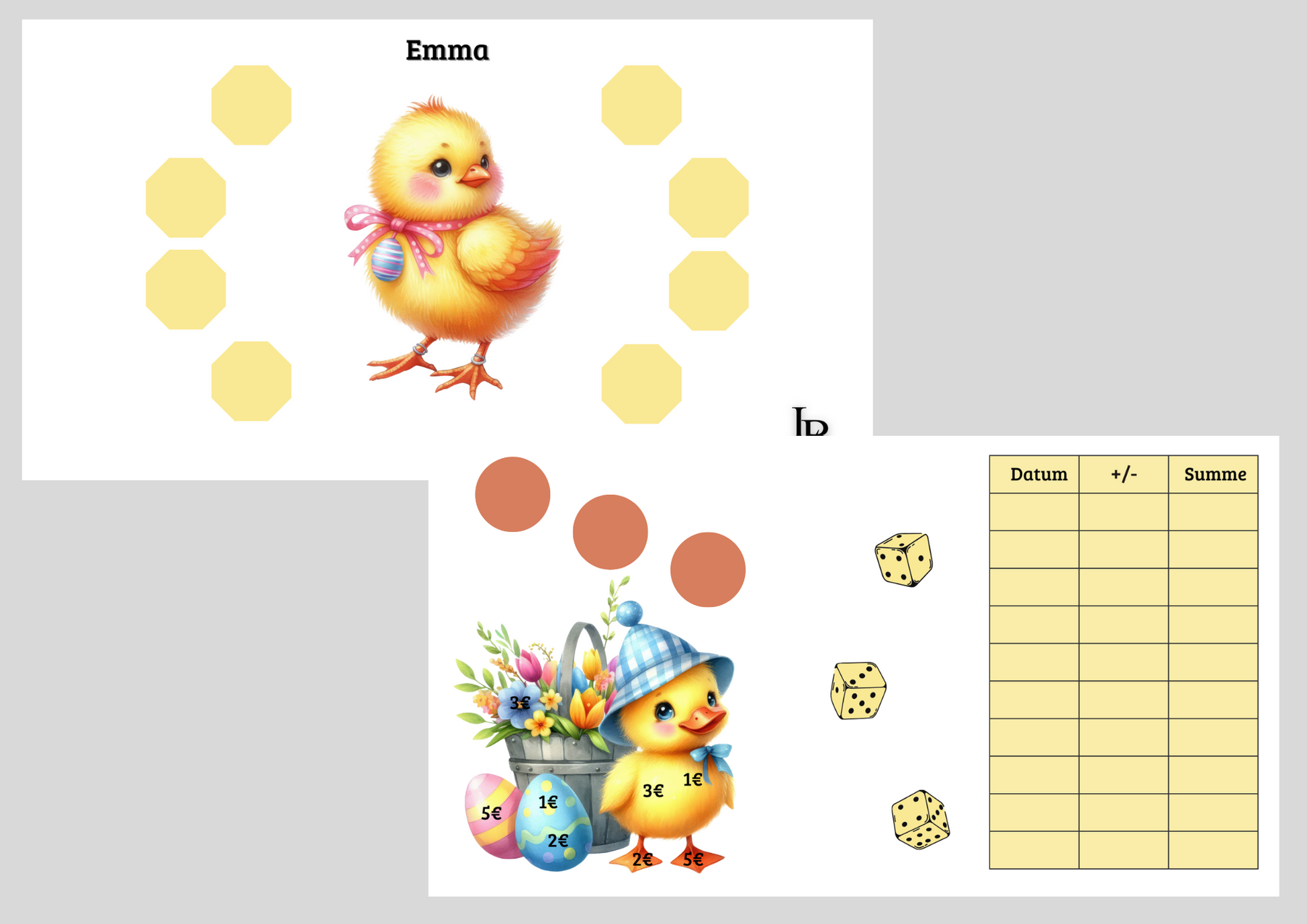 Einzelchallenge zum Rubbeln, Würfeln, Abstreichen und Tombola.