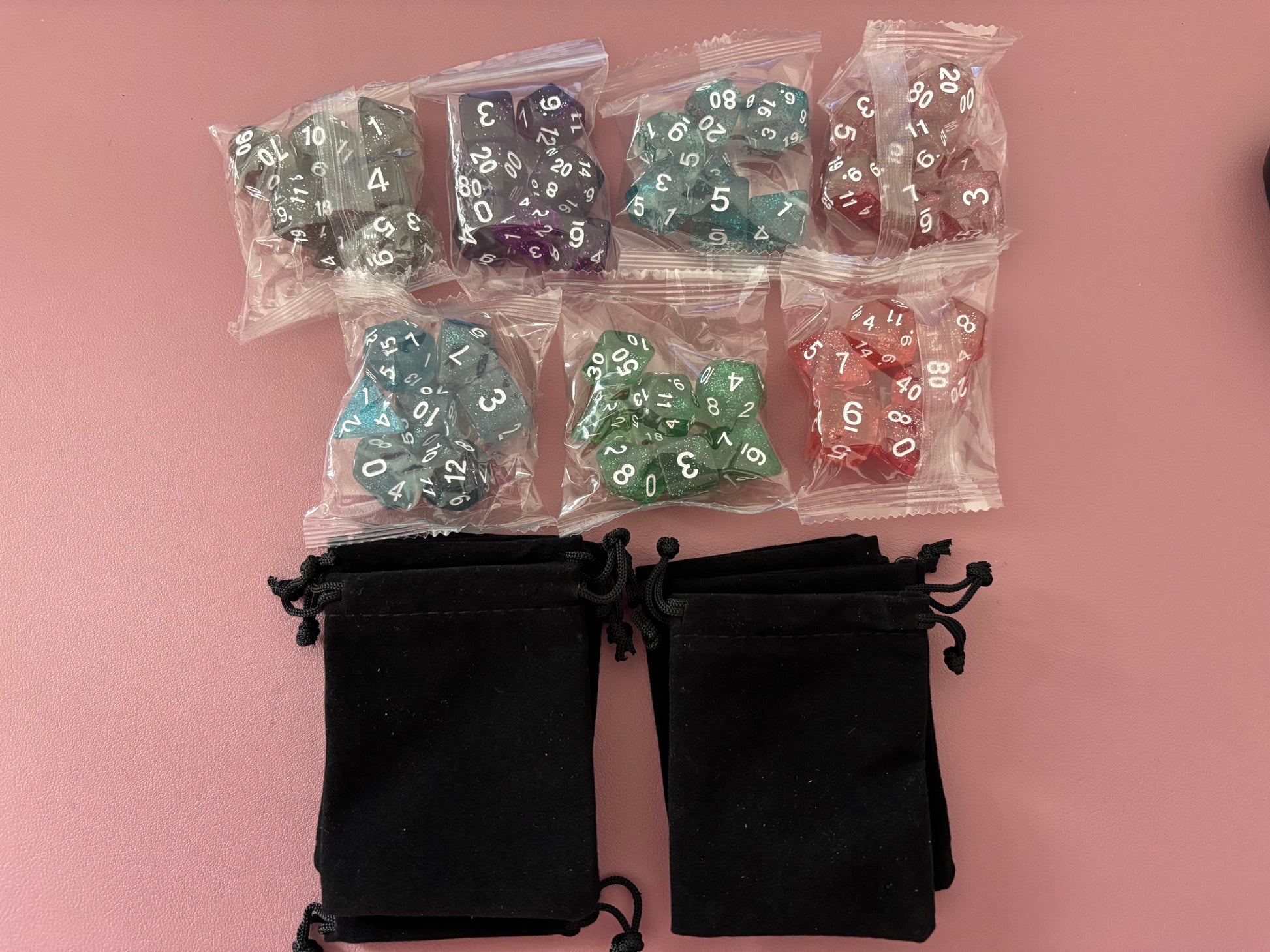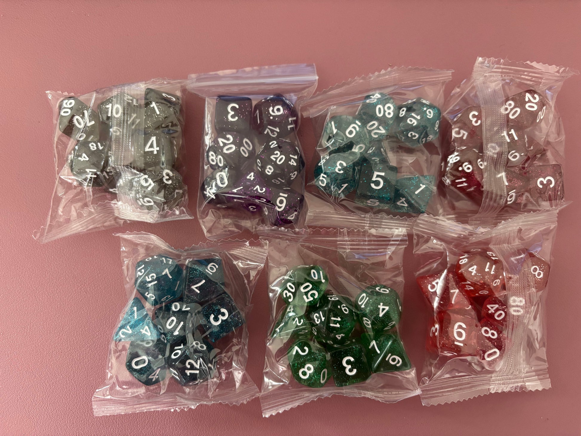 Jedes Würfelset enthält 7 Würfel in einer einheitlichen Farbe. Es ist nicht möglich die Farben zu tauschen